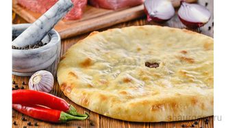 Осетинский пирог со свино-говяжьим рубленым мясом и картофелем (300\200), луком, чесноком и перцем. В основу начинки используется только отборное мясо высшего сорта.
